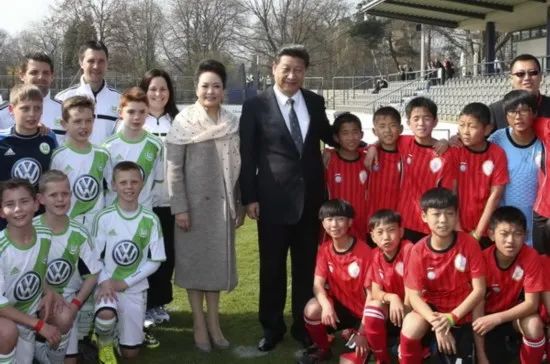 2014年3月29日,习近平亲切看望在德国柏林训练的來自陕西志丹县的中国少年足球运动员。
