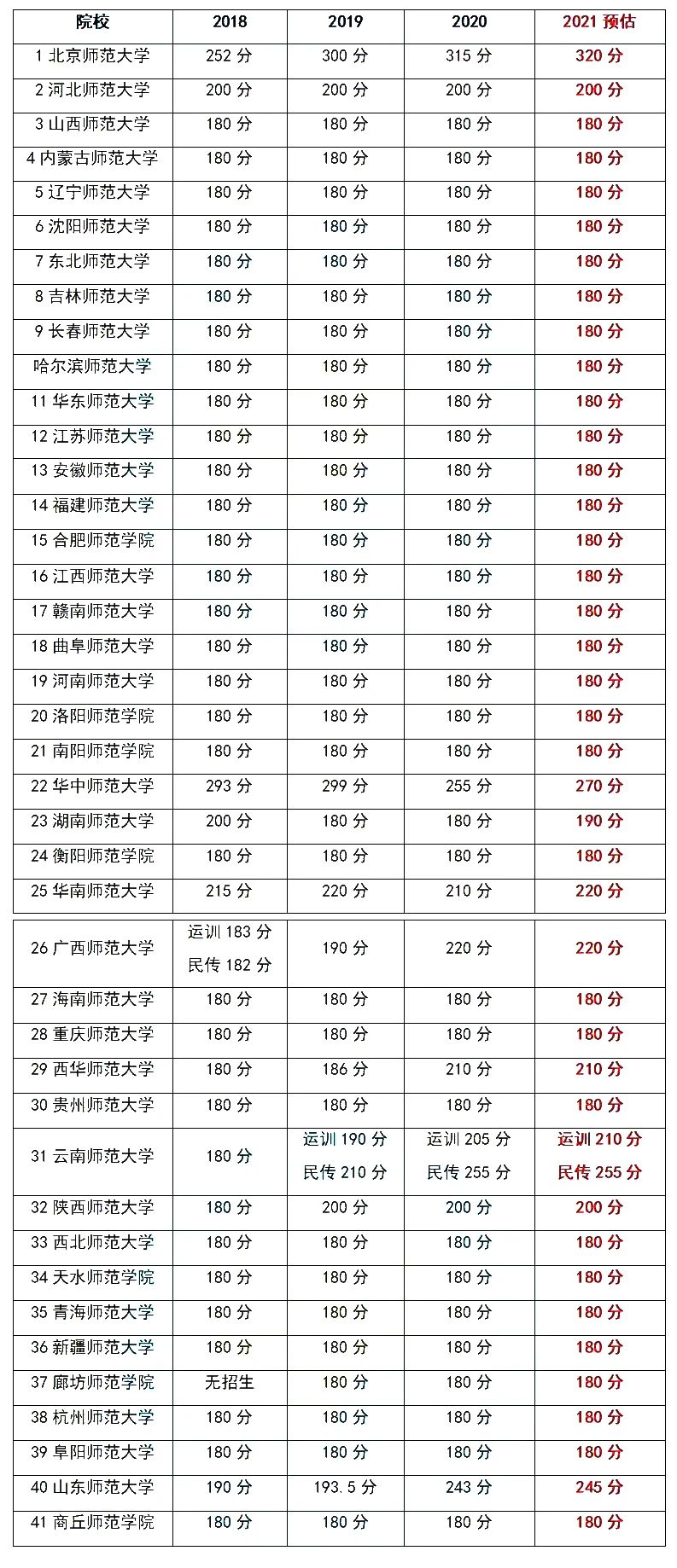 2021年为预估分数线