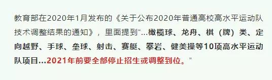 近日,教育部发布了《关于做好2021年普通高校部分特殊类型招生工作的通知》,对2021年高校高水平运动队的招生工作提出了要求。