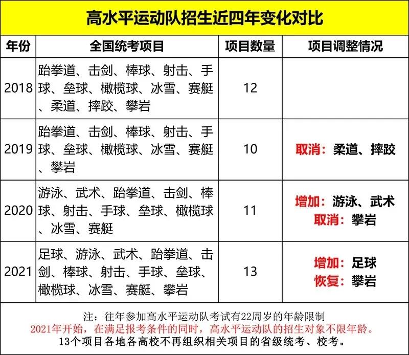 最大的变化是“全国统考”项目新增足球项目,并恢复了攀岩项目,是自2018年来全国统考项目最多的一年。